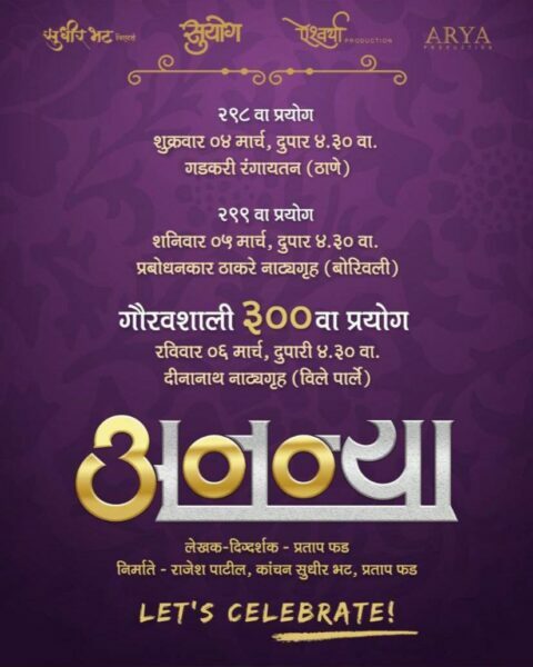 नाटक यशस्वी होतं तेव्हा त्या यशासाठी नाटकाच्या टीममधील प्रत्येक सदस्य आणि त्यांचे अविरत प्रामाणिक प्रयत्न कारणीभूत असतात. अशी नाटकं पुन्हा पुन्हा बघूनही कंटाळा येत नाही. ती प्रत्येक वेळी तितकीच रंजक वाटतात. असंच एक सुंदर नाटक म्हणजे ‘अनन्या’! रसिक प्रेक्षकांसाठी आनंदाची बातमी म्हणजे हे नाटक पुन्हा तुमच्या भेटीस येत आहे. सगळ्यात महत्वाचं म्हणजे या नाटकाचा ३०० वा प्रयोगही लवकरच सादर होणार आहे.
